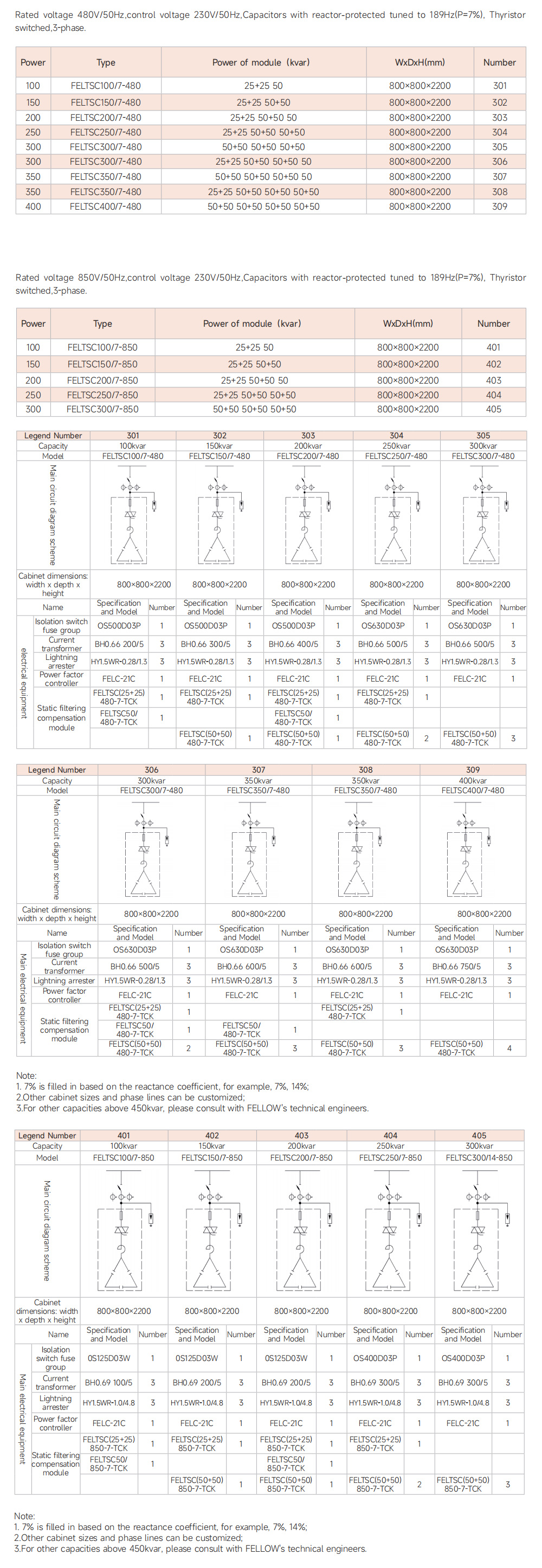 • Rated voltage 480V/50Hz,control voltage 230V/50Hz,Capacitors with reactor-protected tuned to 189Hz(P=7%), Thyristor switched,3-phase.